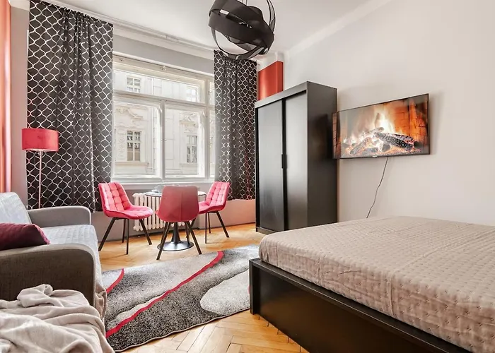 Το διαμέρισμα Place Of Grace - 1 Min To National Theatre δίνει άμεση πρόσβαση σε Statue of Franz Kafka και διαθέτει θέα σε δρόμο. Το διαμέρισμα απέχει περίπου 5 λεπτά με τα πόδια από τον σταθμό μετρό Narodni.