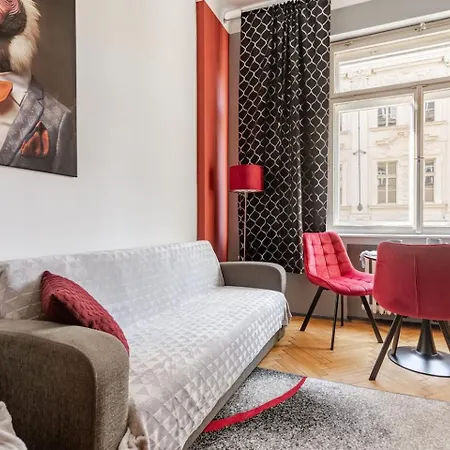 Place Of Grace - 1 Min To National Theatre apartment includes self-catering facilities like an electric kettle, a fridge, and kitchenware for guests' convenience. Myslikova bus stop can be found a few steps from this accommodation.